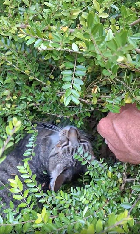 한낮의 열기가 뜨겁게 내리쬐는 어느 날. 주인은 느릿하게 정원을 걷습니다. 어딘가 허전한 기분. 평소라면 집 안이나 마당 구석에 꼭 붙어 있던 고양이 척이 오늘은 보이지 않기 때문입니다. 주변을 둘러봐도 조용하기만 한 가운데, 주인은 덤불 쪽으로 시선을 돌립니다. 혹시나 하는 마음에 가지 사이를 살짝 헤쳐보는 그 순간—그곳엔 눈을 가늘게 뜬 고양이 한 마리가 조용히 웅크리고 있었습니다.