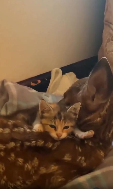 고양이의 발끝은 아주 조심스럽지만 분명한 의도를 가지고 움직입니다. 단순한 애정 표현이라기보다, 새로운 존재에 대한 탐색, 조금은 사냥 본능에 가까운 행동. 하지만 그 모든 동작이 너무 작고 귀여워 보는 이의 마음마저 포근하게 만듭니다.