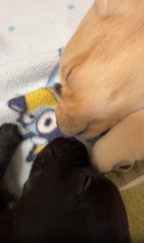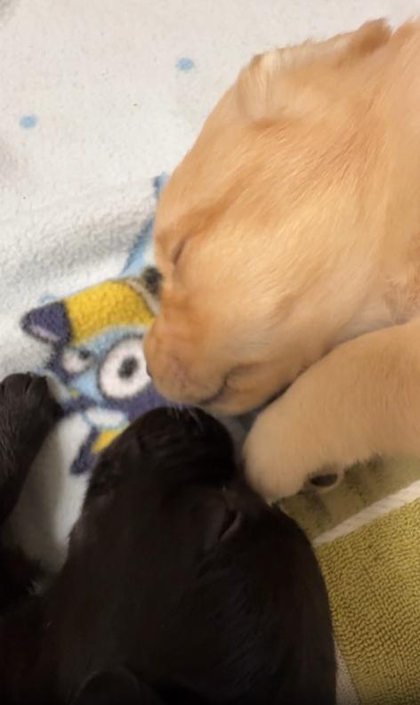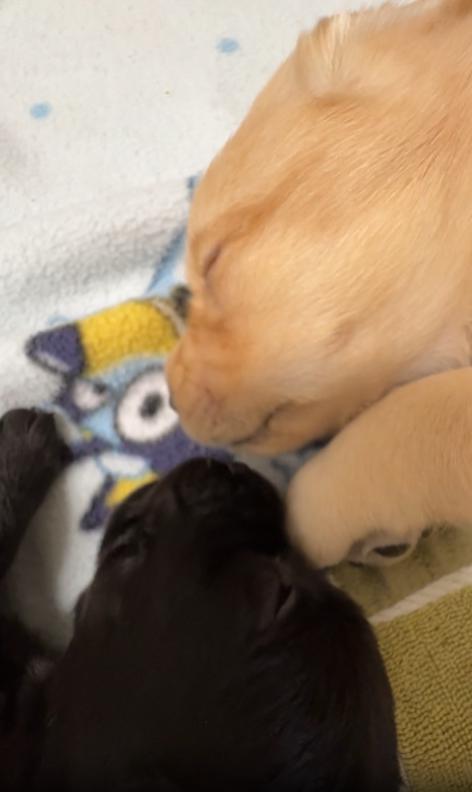 출처 : Reddit / 두 새끼강아지가 서로 주둥이를 가까이붙은채 누워자고있다 무언가 속삭이들 게속 주둥이가 움직인다