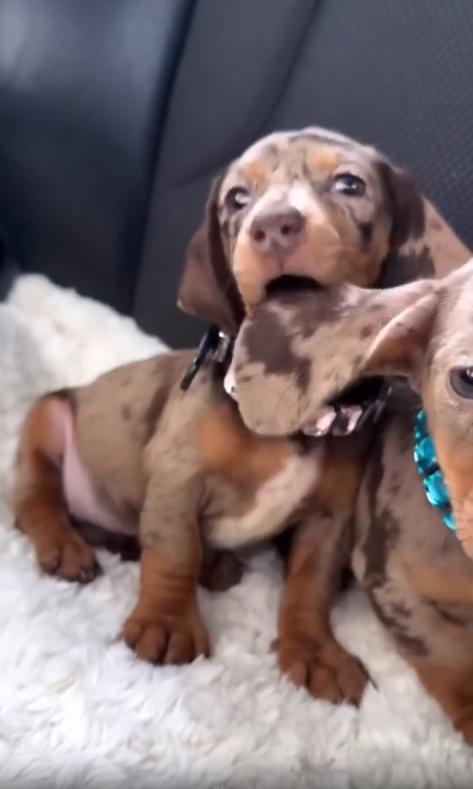 소파 위에 나란히 누운 두 마리의 닥스훈트 강아지. 짙은 갈색의 부드러운 털을 가진 이 작은 남매는, 보기만 해도 흐뭇해지는 조화로운 모습이었습니다. 그런데 이 평온한 한때를 깨는 건 여동생 강아지의 작고 장난기 어린 움직임이었죠.