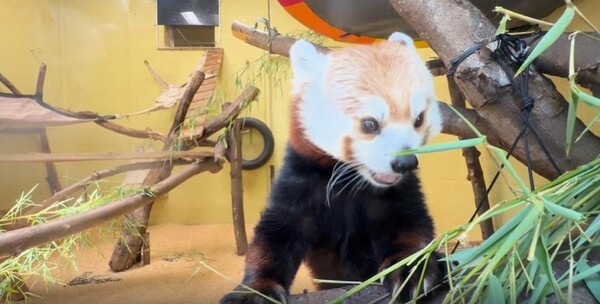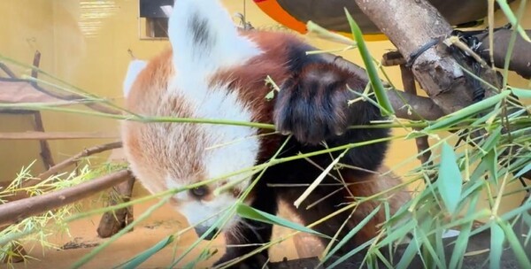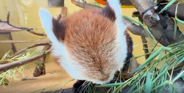 입가에는 연둣빛 잎사귀의 흔적이 묻어 있고, 레서판다는 살짝 눈을 가늘게 뜬 채, 바람과 햇살 속에서 천천히 꼭꼭 씹어먹습니다. 때때로 고개를 갸우뚱하며 더 연한 잎을 골라내는 그 모습은 어린아이가 반찬을 고르는 것처럼 귀엽기만 합니다.