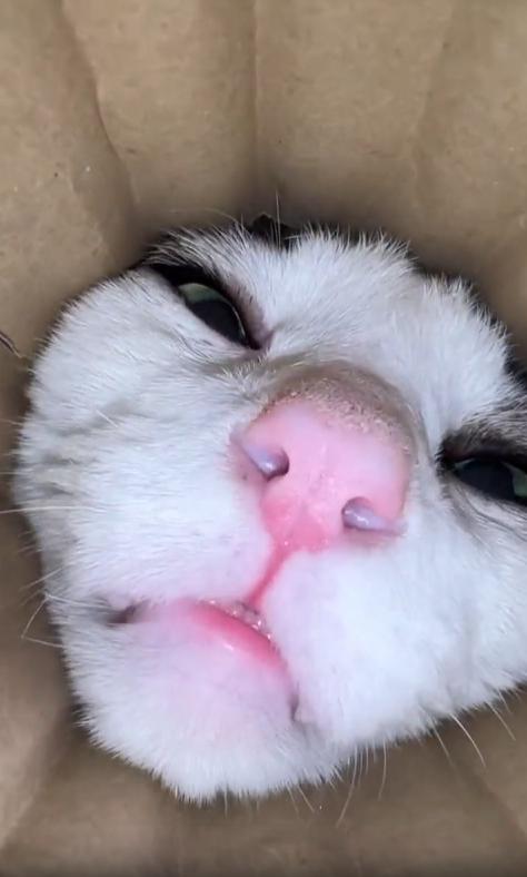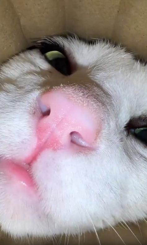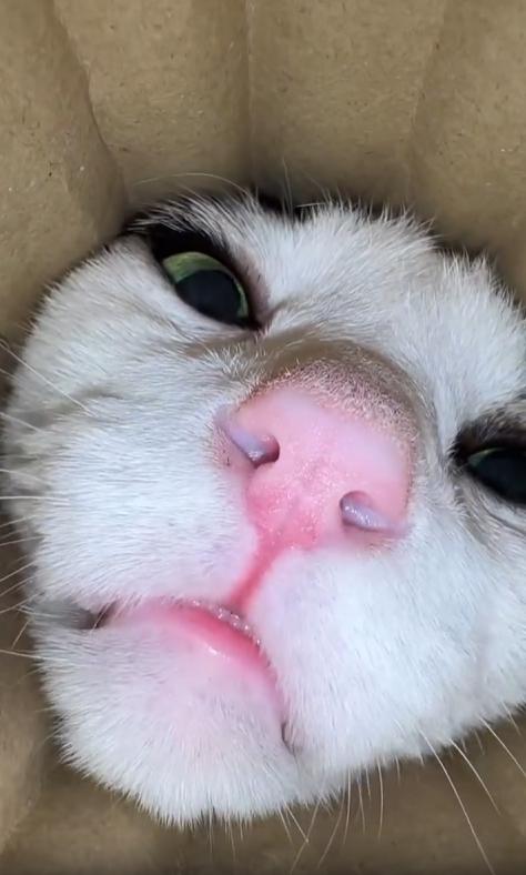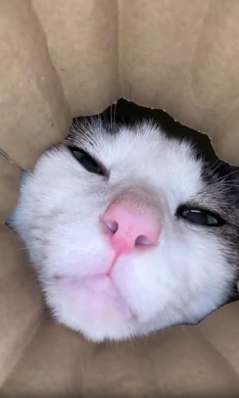 카메라는 종이봉투 바닥에 고정되어 있어, 고양이 얼굴이 점점 가까워질수록 마치 화면 너머로 냥이가 시청자에게 직접 다가오는 듯한 느낌을 줍니다. 입구를 향해 천천히 다가오던 고양이는 머리를 낮춰 얼굴을 들이밀고, 호기심 어린 눈으로 안쪽을 들여다봅니다.