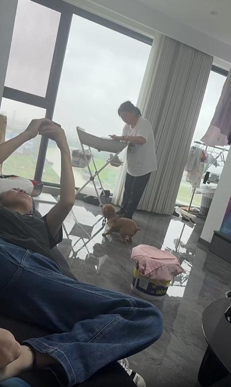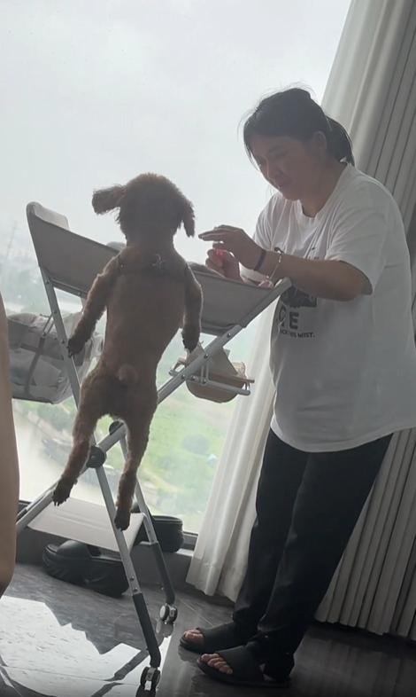 엄마는 아기를 지켜보며 강아지 쪽으로도 시선을 돌립니다. 강아지는 그 찰나의 틈을 놓치지 않고 다시 한 번 깡총. 키가 닿지 않아도 포기하지 않고, 몇 번이고 똑같은 동작을 반복합니다. 영상 속 댓글 하나처럼 말이죠.