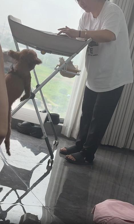조용한 방 안, 아기침대 옆에서 한 엄마가 고개를 숙인 채 사랑스럽게 아기를 바라보고 있습니다. 그녀의 손길은 조심스럽고 따뜻합니다. 그런 그녀 곁에, 또 하나의 ‘마음이 간지러운 존재’가 서 있습니다. 바로 강아지입니다.