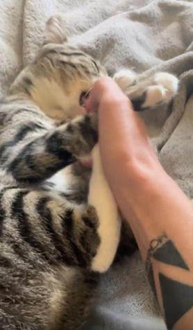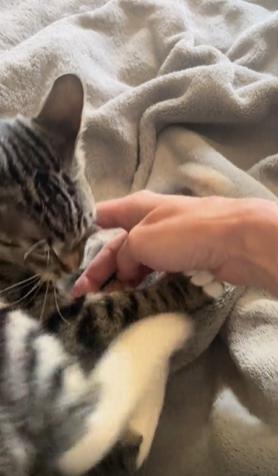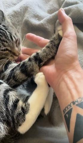 고양이의 시선이 주인의 손끝을 따라갑니다. 이내 천천히 고개를 들더니, 앞발로 주인의 손을 살짝 붙잡고는 그 위에 혀를 갖다 댑니다. 처음에는 조심스럽게, 마치 상태를 확인하듯 가볍게 핥아보다가 점점 속도가 붙습니다. 혀끝은 손등에서 손가락으로, 다시 손목 가까이로 부드럽게 움직이며 반복되는 그루밍을 이어가죠. 이건 단순한 장난도, 우연한 행동도 아닙니다. 고양이가 진심으로 주인을 가족으로, 무리를 위한 존재로 받아들였다는 가장 따뜻한 표현입니다.