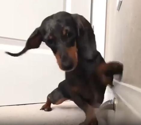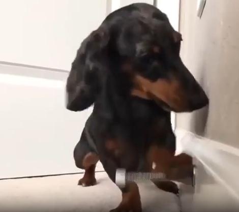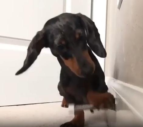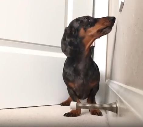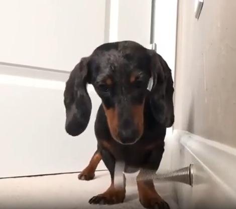 작고 길쭉한 몸, 짧은 다리, 그리고 호기심 가득한 눈빛. 닥스훈트 한 마리가 집 안 구석에서 무언가에 완전히 빠져버렸습니다. 그것은 장난감도, 간식도 아닌… 바로 용수철 도어 스토퍼. 금속으로 된 그 작고 반짝이는 물체가 강아지에겐 마치 살아 움직이는 친구 같았던 걸까요?