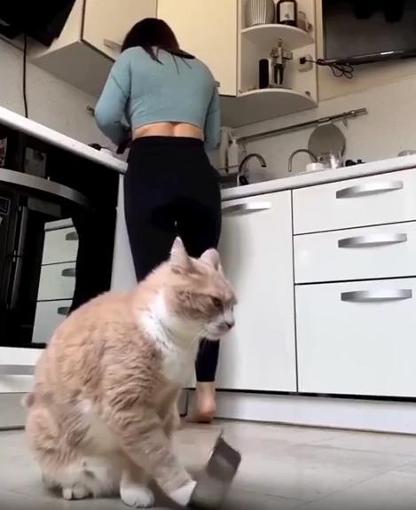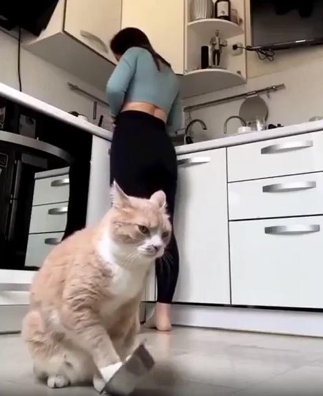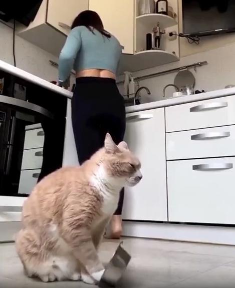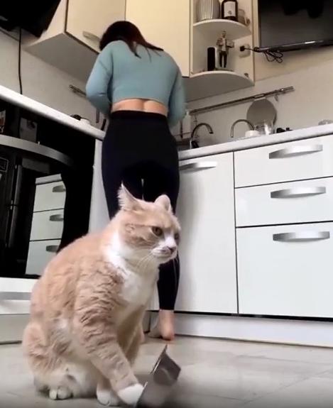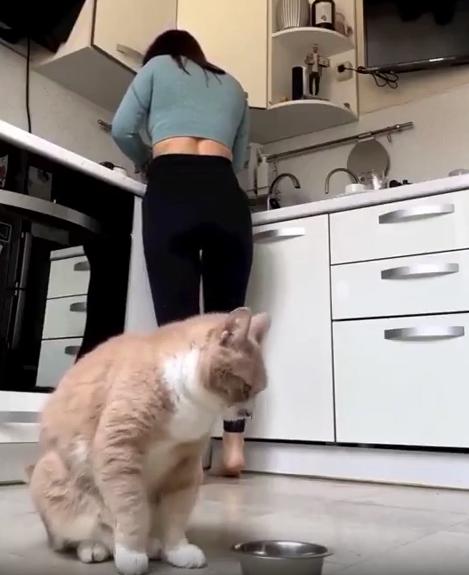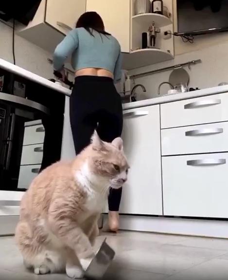 출처 : Reddit / 주인이 부엌에서 밥을 준비중이다 그 뒤에 바닥에 있는 고양이가 밥그릇 한쪽을 살짝 누르는걸 반복하며 밥그릇 소리를 낸다