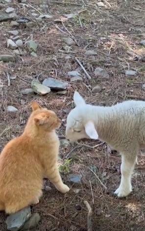 고양이와 새끼양의 이 짧은 만남은 단지 귀여운 장면이 아니라, 다름을 넘어서는 다정한 연결의 시작이었습니다. 언어가 없어도, 털결이 달라도, 그들이 주고받은 건 분명한 하나의 마음이었습니다.