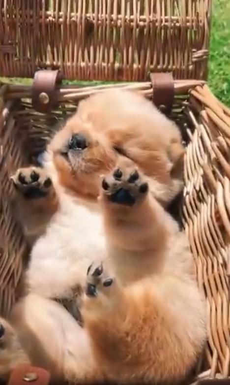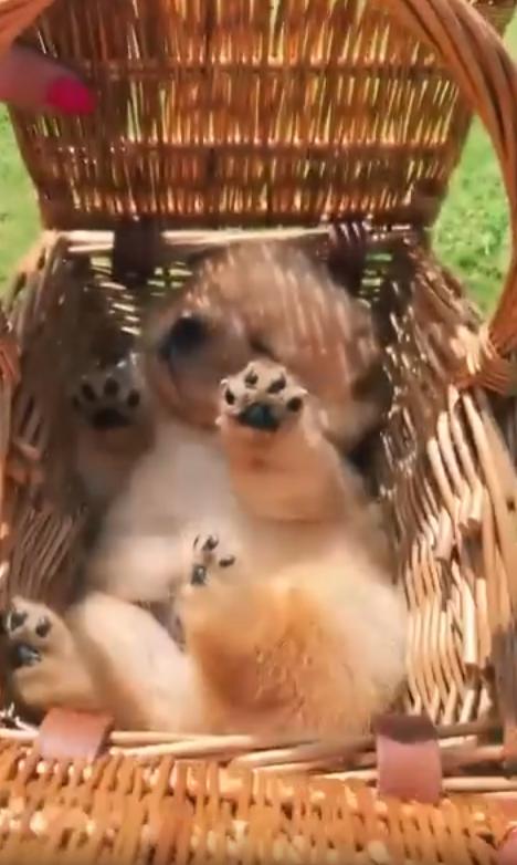 햇살이 따스하게 내리쬐는 한낮의 들판, 피크닉을 준비하던 누군가가 바구니 뚜껑을 살며시 엽니다. 안에서 발견된 건 기대했던 샌드위치도, 과일도 아니었습니다. 대신, 푹신한 흙색 털에 감싸인 작은 강아지 한 마리가 등을 바닥에 대고 느긋하게 누워 있었습니다. 그 모습이 꼭, 포슬포슬한 찐 감자 같기도 했습니다.
