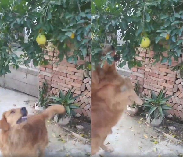 그는 목표물을 바꾸고서 한두 번 서더니 조금 작은 석류를 입에 물었습니다. 끝까지 포기하지 않은 리트리버에게 드디어 보상이 주어지는 순간입니다. 열매를 획득한 리트리버는 유유히 이 나무를 떠납니다. 누리꾼들은 목표를 이룬 리트리버에게 정말 고생했다며, 그의 노고에 감동했습니다.