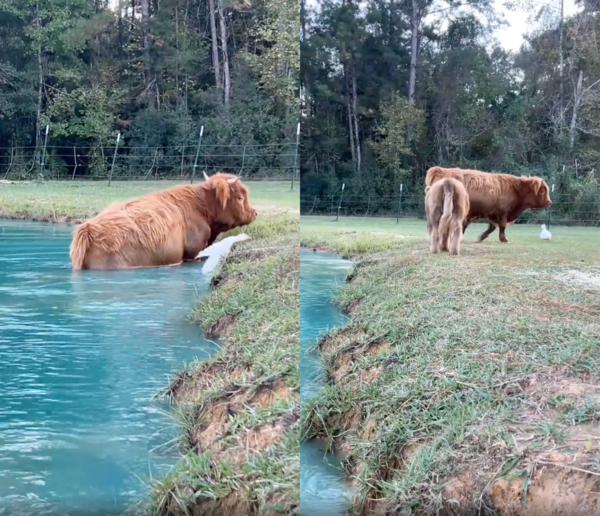 오리는 소가 호수에서 나올 때도 함께 따라 나오며, 두 동물의 유대감은 보는 이들에게 따뜻한 감정을 불러일으킵니다. 누리꾼들도 이 둘의 우정에 너무나 따뜻하다는 반응을 보였죠.