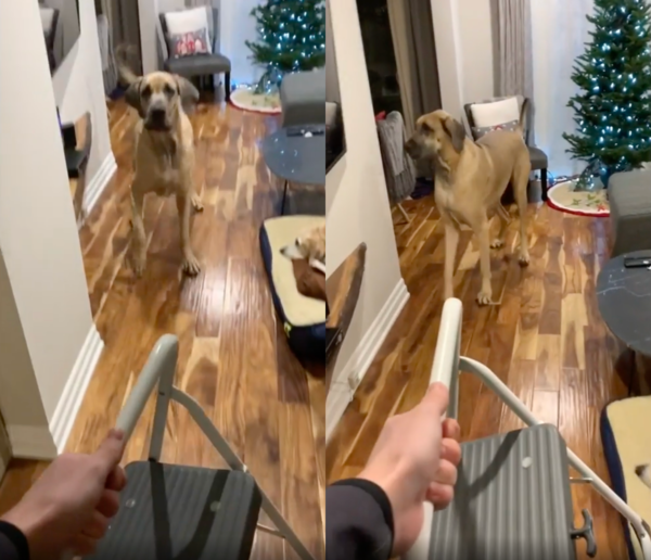 출처 : Reddit / 간이 계단을 가까이 가져가자 도망가는 대형견