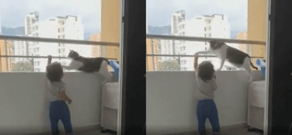 “위험해!” 아이를 지켜주는 고양이의 따뜻한 보호 본능