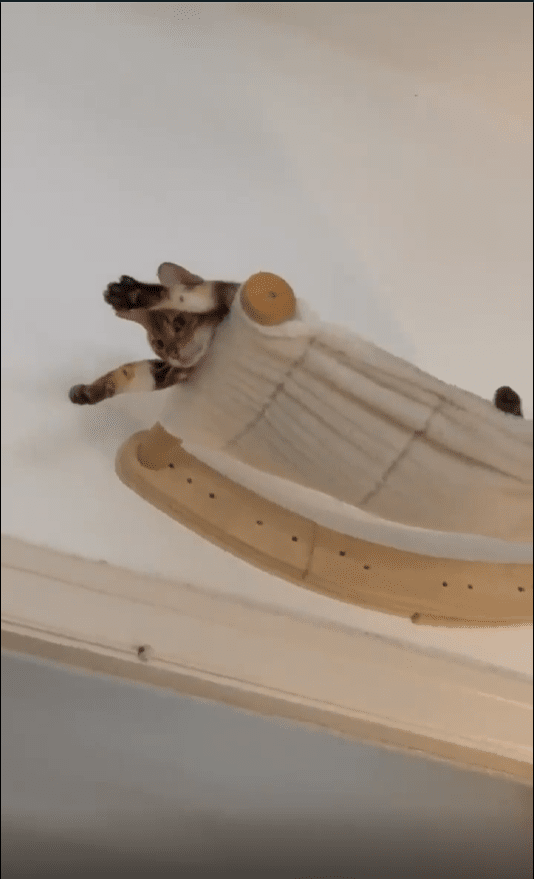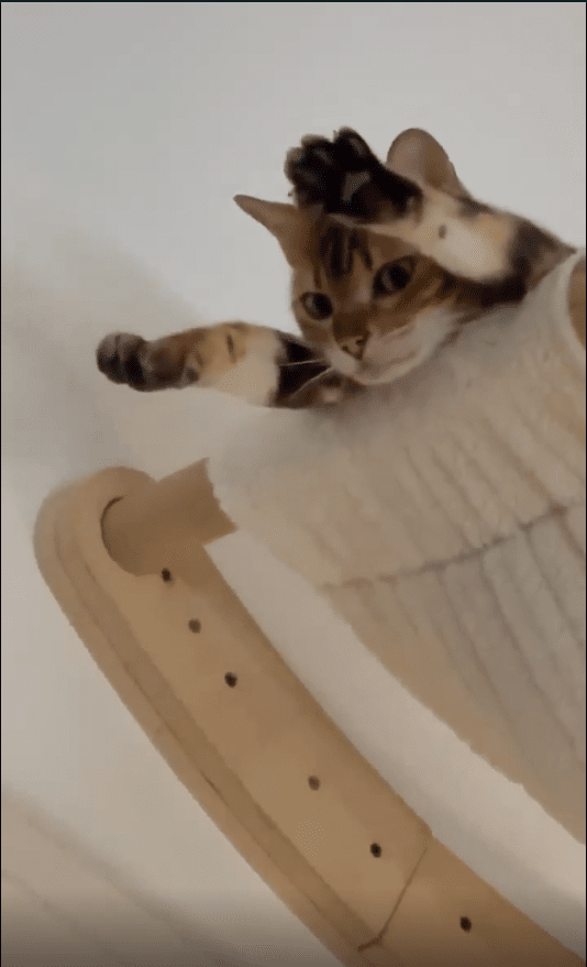 하지만 정작 당사자는 너무나도 태연합니다. 바닥에 엎드린 채 움직이지 않고, 그저 조용히 휴식을 취하는 듯한 표정입니다. 사람이라면 이런 자세를 유지하기가 쉽지 않겠지만, 고양이에게는 이조차도 완벽한 균형감각을 보여주는 하나의 방식일지도 모릅니다.