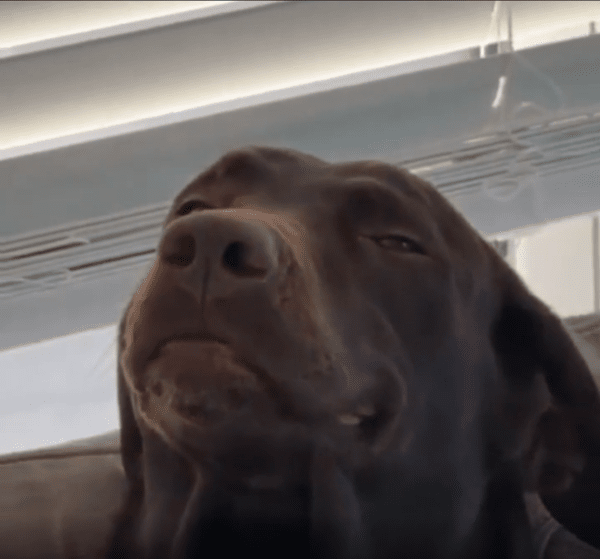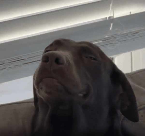 쿠션의 흔적이 아직도 앞발에 남아 있지만, 강아지는 태연합니다. 마치 "나는 아무것도 모릅니다. 그리고 만약 내가 그랬다 해도, 지금 이 순간은 이미 늦었죠." 라는 듯한 태도입니다.