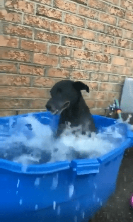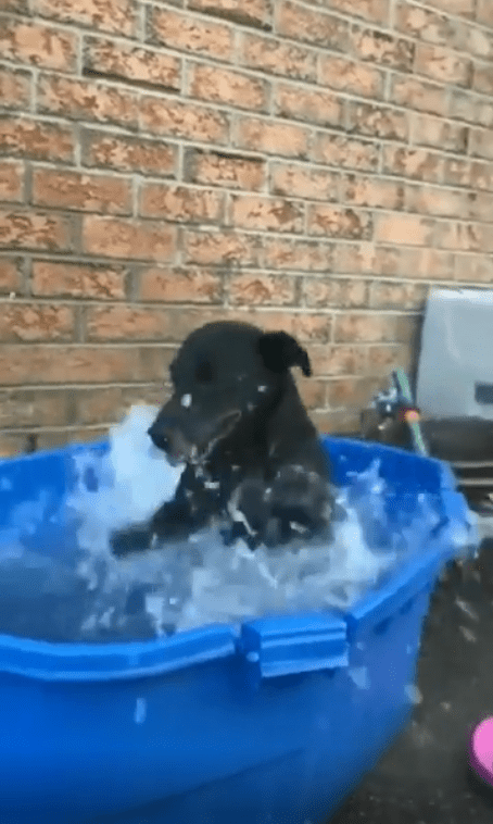 파란 플라스틱 욕조 안, 물이 찰랑거리는 공간 한가운데에 검은 강아지가 자리 잡고 있었습니다. 이미 온몸이 살짝 젖어 있었지만, 그것만으로는 부족했던 걸까요? 강아지는 앞발을 번쩍 들더니, 거침없이 물을 첨벙이기 시작했습니다!
