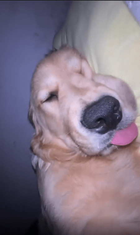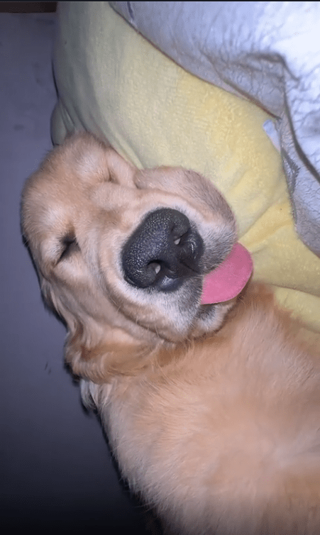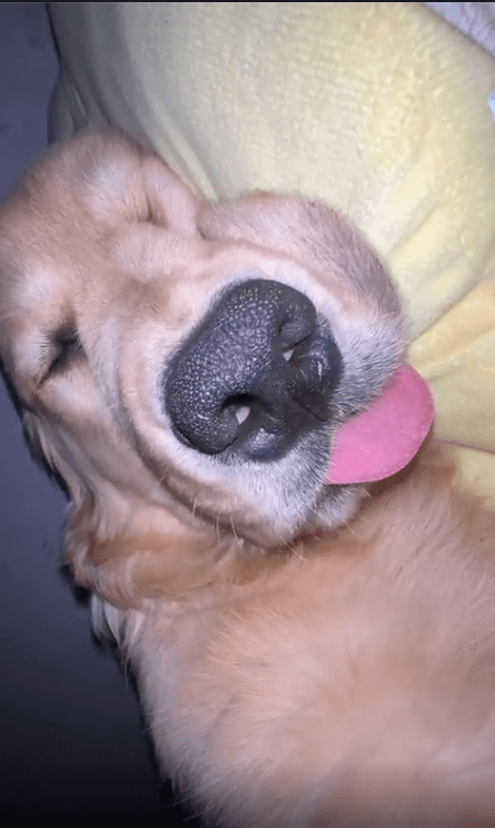 입을 살짝 벌린 채 혀를 아주 조금 내밀고 있는 모습이 포인트입니다. 입과 혀가 크게 움직이지는 않지만, 호흡이 깊어질 때마다 아주 미세하게 혀끝이 따라 움직입니다. 강아지는 그저 꿈속을 헤매고 있을 뿐인데, 듣고 있는 사람 입장에서는 묘하게 중독성이 있는 소리입니다.