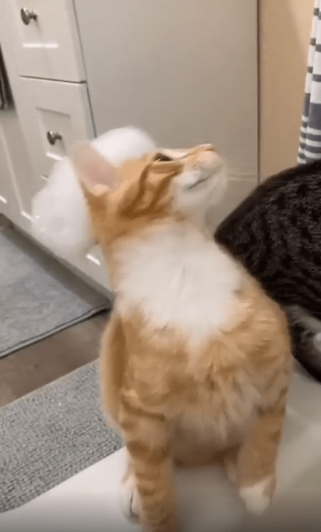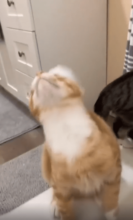 머리 위에 뭐가 있다고? 혼란에 빠진 고양이