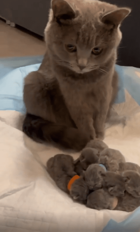 새끼 고양이들은 아직 아무것도 모른다는 듯 주변에서 자유롭게 움직이고 있지만, 어미 고양이는 잠시 모든 걸 내려놓고 깊은 사색에 빠져 있습니다. "이제 어떻게 해야 하지…" 라는 듯한 표정이 보는 사람까지 공감하게 만드는 순간입니다.