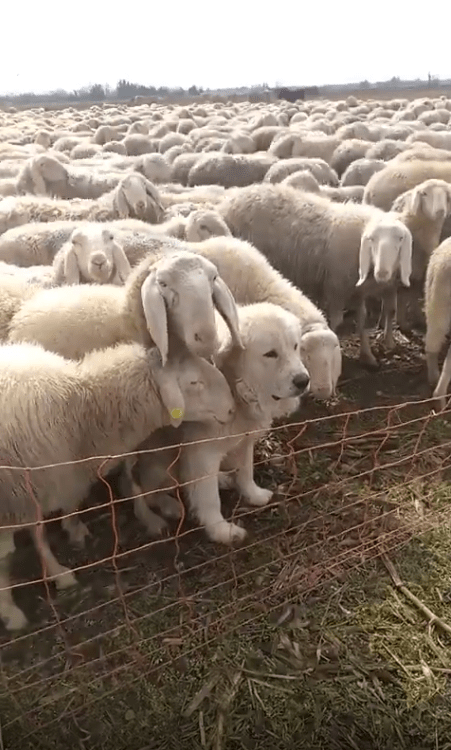 주변 양들은 개의 존재를 신경 쓰지 않는 듯 보입니다. 마치 오래전부터 함께했던 가족처럼 자연스럽게 어울려 있는 모습. 보호자로서 양들과 함께하는 이 개는, 정말 "양이 되려면 양들 사이에 섞여야 한다." 라는 철학을 몸소 실천하고 있는 것 같습니다.