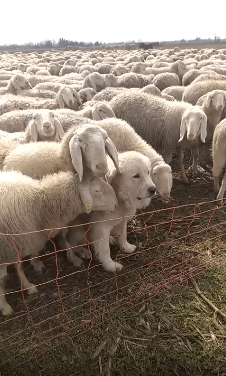과연 개는 이 상황을 어떻게 생각하고 있을까요? "나는 양들을 지키는 개일 뿐… 하지만 양처럼 행동해야 자연스럽지!" 라는 심오한 결심이라도 한 걸까요? 아니면 그냥 "여기 있으니 나도 양인 걸로 하자!" 하고 편안하게 받아들이고 있는 걸지도 모릅니다.