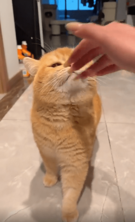 주인은 조용히 손을 뻗어 고양이의 머리를 쓰다듬었습니다. 하지만 고양이는 쉽게 진정되지 않았습니다. 처음엔 쓰다듬는 손길에도 다시 울음을 내뱉었습니다. 마치 "쓰다듬어 준다고 끝이 아니에요! 내가 얼마나 기다렸는데!" 라고 말하는 듯했습니다.