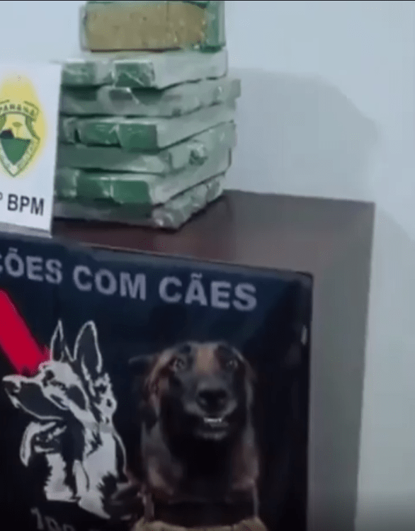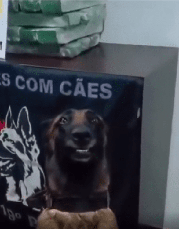 출처 : Reddit / 강아지 뒤에는 마약같은 것들이 놓여있다