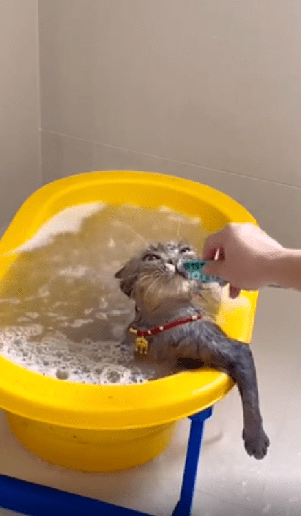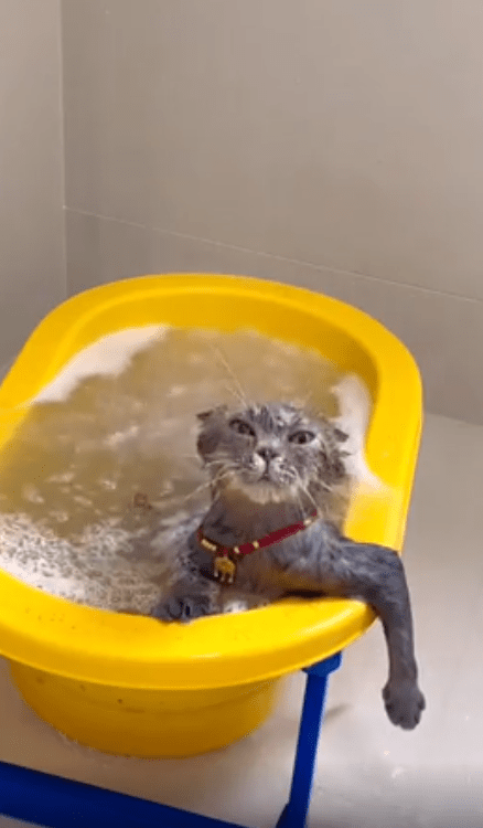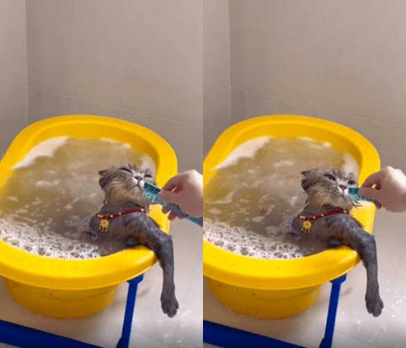 이 고양이에게 욕조는 단순한 물이 아닌, 몸을 기대며 쉴 수 있는 완벽한 장소였을지도 모릅니다.