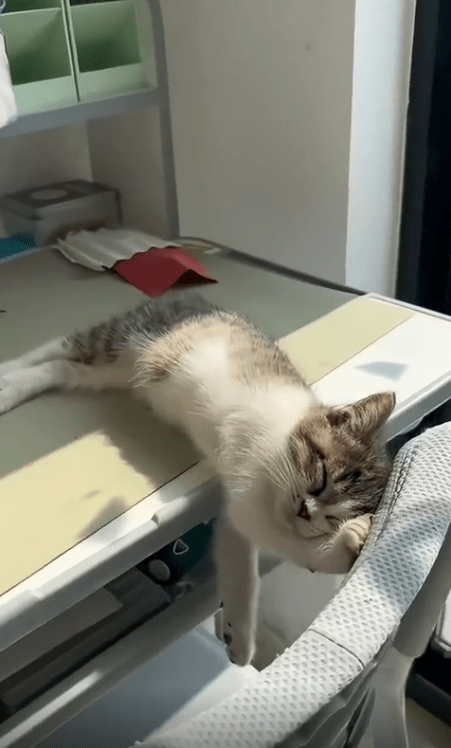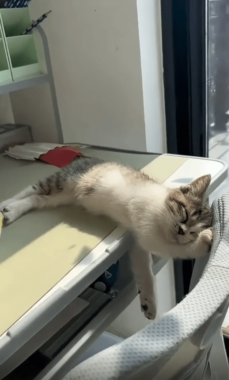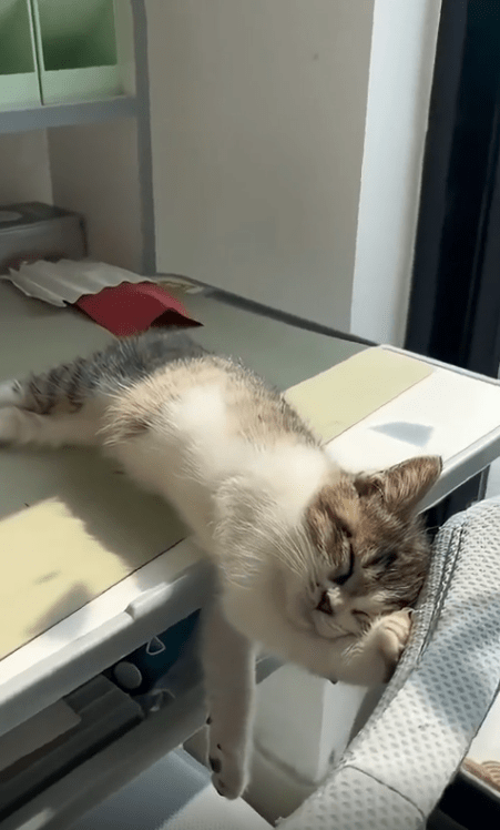 "이렇게 편하게 잘 수 있다고? 역시 고양이는 어디서든 잘 수 있구나."
