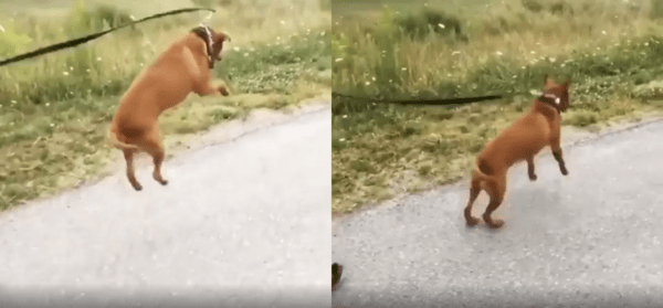 강아지가 몸을 낮추고 가만히 웅크리고 있었습니다. 마치 점프를 준비하는 듯한 모습이었지만, 보통 개들이 점프하는 방식과는 뭔가 달랐습니다. 그리고 그 순간, 강아지는 뒷다리에 힘을 모아 마치 토끼처럼 깡충 뛰어올랐습니다.