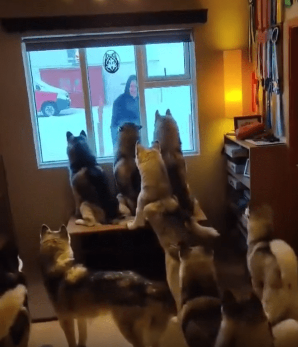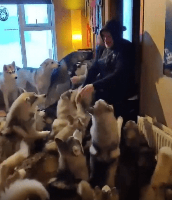 그리고 마침내 주인이 집 안으로 들어오자, 기다리던 강아지들의 인내심이 폭발했습니다.
