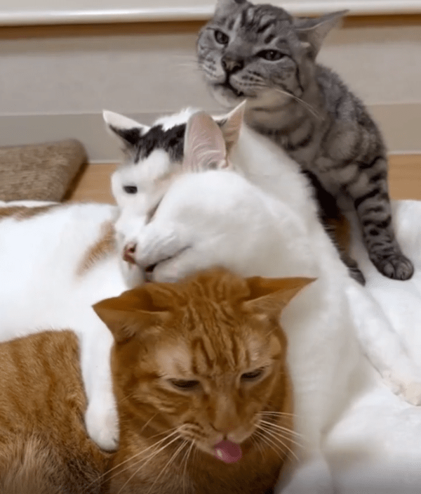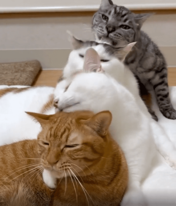 이 조용하면서도 평화로운 순간은 고양이들 사이의 신뢰와 유대감이 얼마나 깊은지를 보여주는 장면이기도 했습니다.