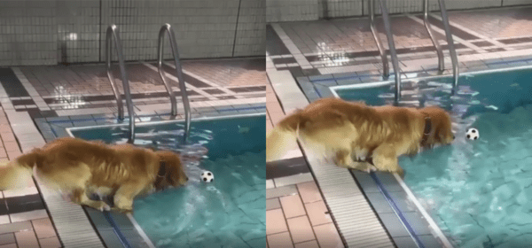 "골든 리트리버: ‘빠졌지만, 공은 얻었다!’"