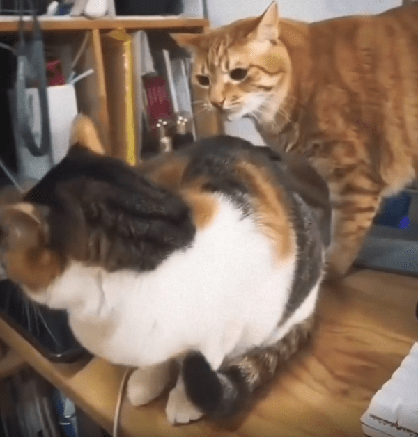 출처 : Reddit / 앞 고양이의 엉덩이를 노리는 고양이