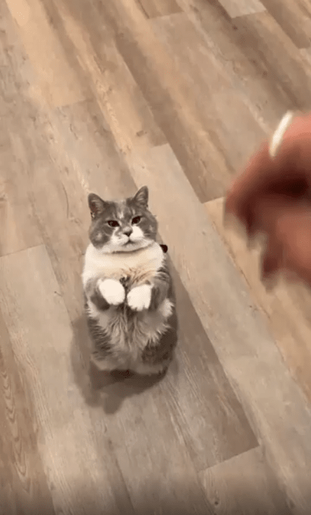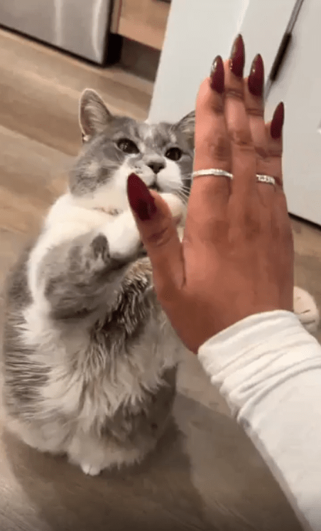 하지만 여기서 끝이 아닙니다. 주인이 다른 트릭을 요청하면, 고양이는 다시 일어나 능숙하게 다음 동작을 수행합니다. "하이파이브!"라고 말하면 앞발을 들어 올려 주고, "손!" 하면 깔끔하게 앞발을 건넵니다. 마치 훈련된 강아지처럼 주인의 명령을 정확히 이해하고 행동하는 모습이 감탄을 자아냅니다.