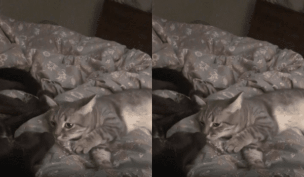 고양이와 강아지가 나란히 누워 있습니다. 따뜻한 분위기 속에서 두 동물은 편안하게 쉬고 있었죠. 하지만 이 조용한 순간이 오래가지 않았습니다. 고양이가 갑자기 고개를 돌려 옆에 있는 강아지의 얼굴을 바라보더니, 천천히 코를 가져가 냄새를 맡기 시작했습니다.
