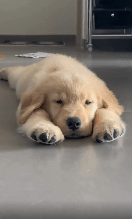혹시 여러분도 이런 순간이 있지 않나요? 아무 생각 없이 바닥에 누워 온몸의 긴장을 풀고 완벽한 휴식을 취하고 싶은 날 말입니다. 오늘은 이 강아지처럼, 아무것도 신경 쓰지 않고 온전히 쉬는 시간을 가져보는 건 어떨까요?