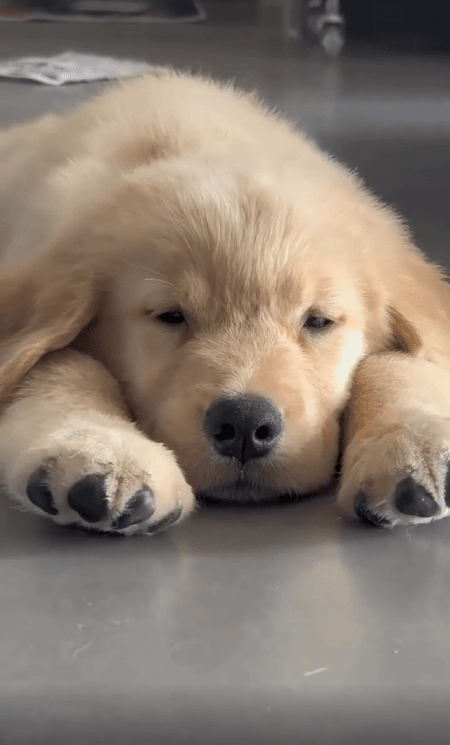 강아지의 표정은 그야말로 평온함 그 자체입니다. 눈은 살짝 감긴 채, 움직임은 전혀 없습니다. 바닥에 몸을 밀착시킨 채 한 치의 긴장도 없이 완전히 몸을 맡긴 상태입니다. 긴 하루를 보낸 뒤 마침내 찾아온 완전한 휴식의 순간처럼 보입니다.
