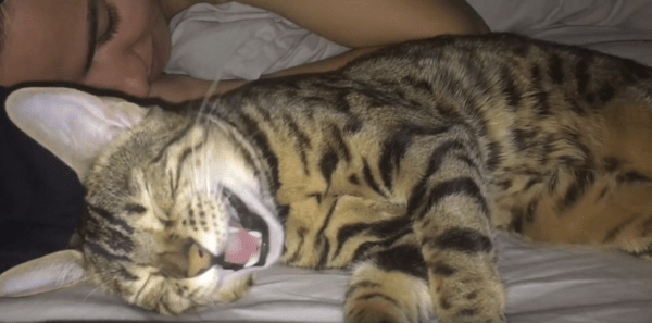 고양이는 잠시 조용해지나 싶더니 다시 작은 소리를 냅니다. 이번에는 살짝 더 높은 소리입니다. 몸이 아주 살짝 떨리더니, 앞발이 살짝 위로 올라갔다가 다시 침대 위로 내려옵니다. 그러더니 고양이는 마지막으로 "고옹…" 하는 소리를 낸 뒤, 몸을 살짝 웅크리고 다시 조용해집니다.