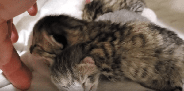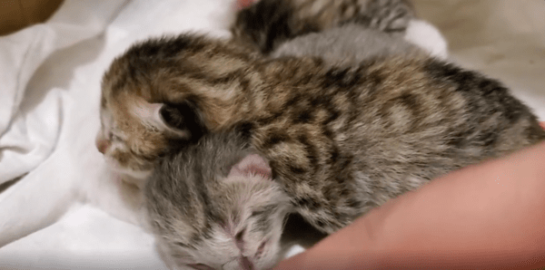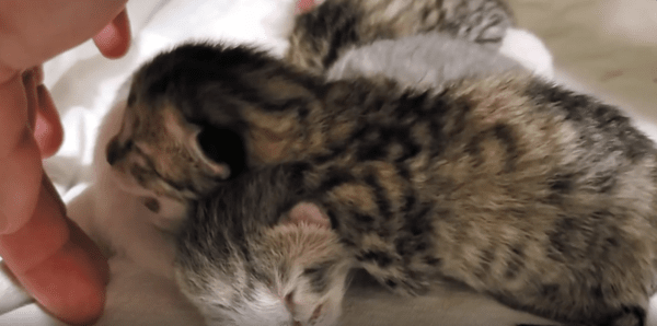 새끼 고양이 두 마리가 서로 몸을 겹쳐 크로스로 누워 있습니다. 포근하게 몸을 맞대고 자는 듯한 모습이 사랑스럽습니다. 그런데 한 고양이에게 손가락을 살짝 가까이 대자 갑자기 작은 입을 벌리며 “쉿쉿” 소리를 냅니다. 마치 자기 영역을 지키려는 듯한 귀여운 경계 반응입니다.