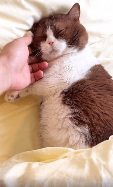 주인이 다가와 살며시 손가락으로 고양이의 등을 톡톡 건드립니다. 한번, 두번, 세번. 하지만 고양이는 꿈나라가 그리도 달콤한지 미동조차 없습니다. 귀를 한번 파르르 떨기는 했지만, 눈을 뜨거나 몸을 움직일 생각은 전혀 없어 보입니다. 오히려 이불을 조금 더 움켜쥐는 듯한 작은 몸짓이 포착됩니다. "아직은 못 일어나… 더 잘래…"라고 말하는 듯한, 세상에서 가장 게으르고 사랑스러운 항변입니다.