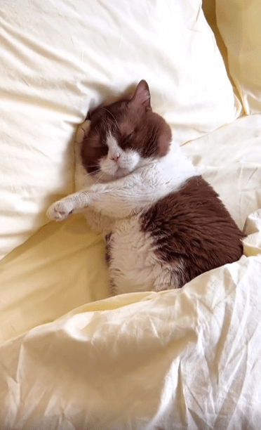 갈색 귀 끝만 삐죽 나와 있는 모습이 어찌나 귀여운지, 보는 사람까지 덩달아 미소 짓게 만듭니다. 그 고요한 숨결과 무심한 반응마저, 오히려 고양이의 완벽한 평화로움을 더 돋보이게 합니다.