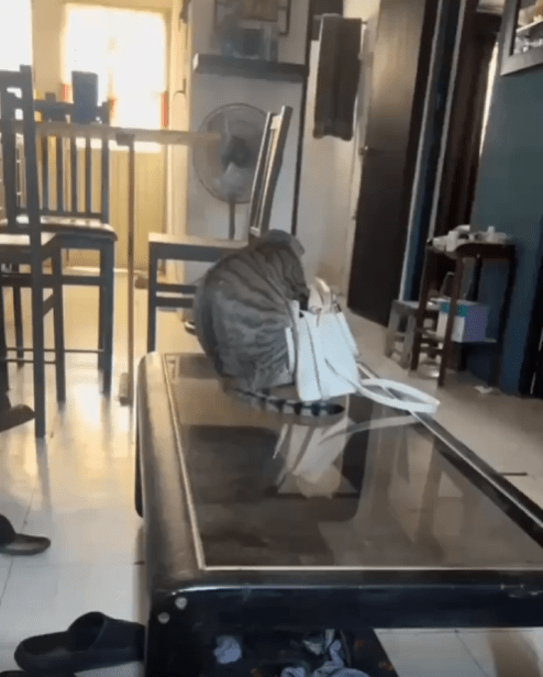 한참을 헤집던 고양이의 손은 멈췄고, 눈만으로 상황을 수습하려는 듯 무심한 척 하지만 이미 모든 장면이 녹화 중이었죠. 그리고 바로 그 순간, 영상은 절묘하게 끝이 납니다. 마치 “현장을 덮자”는 듯한 완벽한 컷.