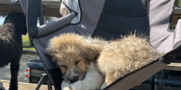 몸을 꼭 붙인 채 누운 강아지는 앞발을 가지런히 모으고, 고개는 살짝 숙인 채 바람결을 느끼고 있었어요. 해먹이 살짝살짝 흔들릴 때마다 강아지의 숨소리도 가볍게 흔들리는 듯했고, 축 늘어진 귀와 약간 벌어진 입술에서는 편안한 기색이 흘러나왔습니다.