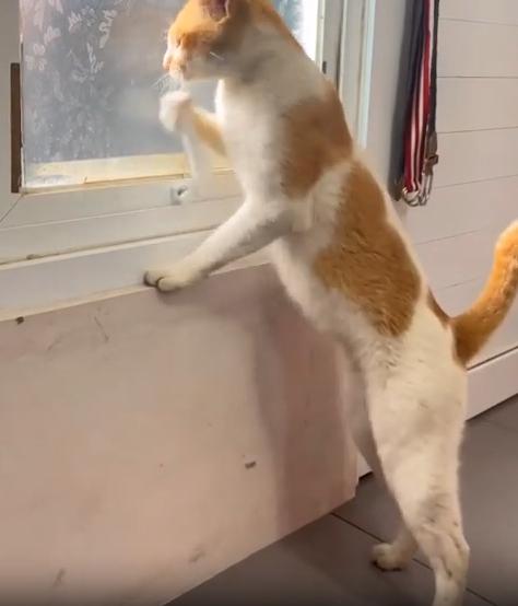 창문 앞에 선 고양이 한 마리. 고요한 바깥 풍경을 응시하던 그 녀석은 어느새 앞발을 살짝 들어, 창문 손잡이를 향해 조심스럽게 다가갑니다. 손잡이는 아래로 누르는 것이 아니라 위로 들어 올려야 열리는 방식. 그런데 고양이는 정확히 그걸 알고 있었던 듯, 앞발을 걸치더니 툭—하고 위로 들어 올립니다.