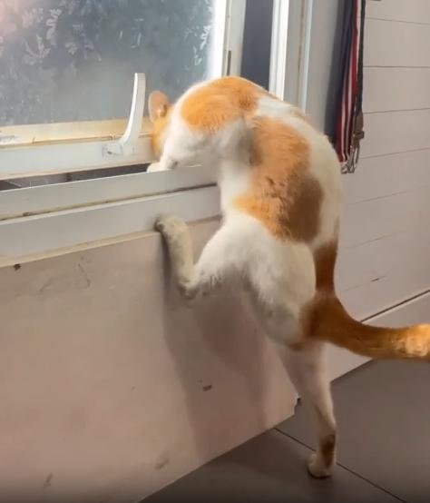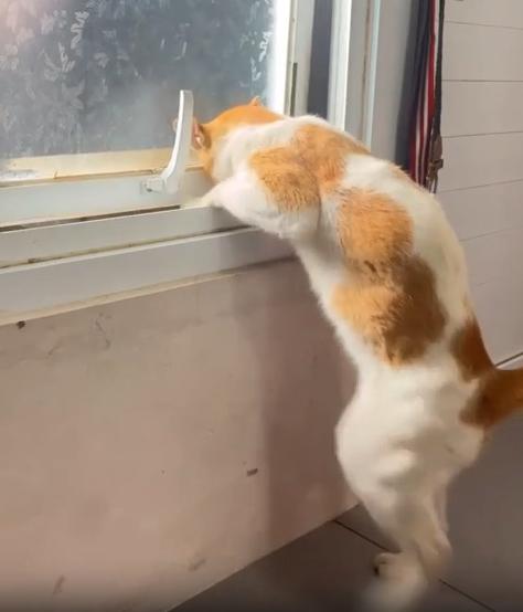 딱, 그 순간. 고양이는 한 템포의 망설임도 없이 창문을 앞발로 밀어내며 문을 활짝 엽니다. 손잡이를 위로 당기는 복잡한 동작도, 창문을 밀어 열고 바깥으로 나서는 타이밍도 어찌나 자연스럽고 능숙한지, "혹시 어제도 나갔다 온 거 아니야?" 싶은 의심이 절로 들 정도였죠.