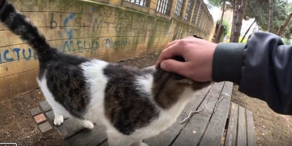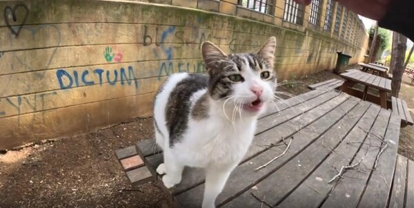 야외 테이블 위, 날이 저문 저녁 무렵. 길고양이 한 마리가 조용히 몸을 웅크리고 있습니다. 멀리서 보면 경계심이 가득할 것만 같은 그 모습에 누군가 조심스럽게 다가가 손을 내밉니다. 손끝이 고양이의 얼굴에 닿는 순간, 놀라운 일이 벌어졌어요.