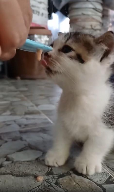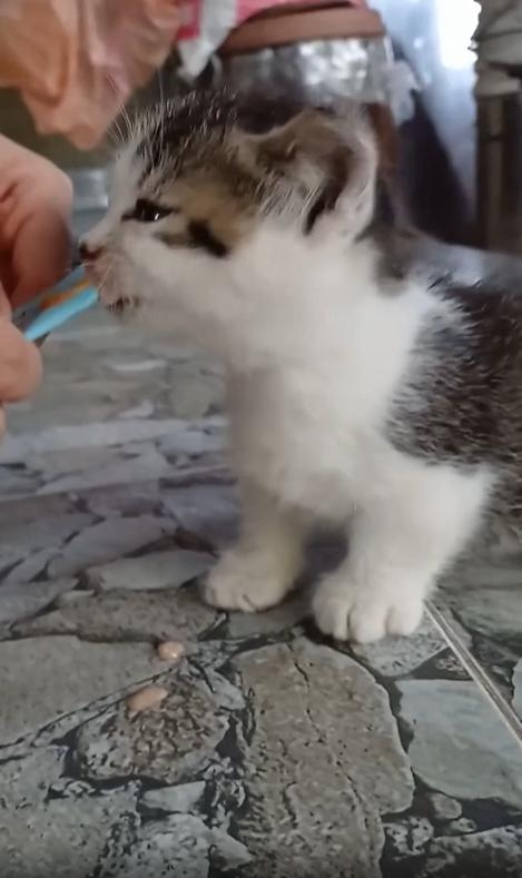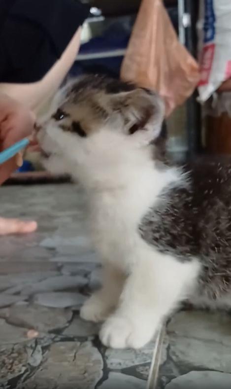 주인이 손을 조금 내밀자 고양이는 망설임 없이 혀를 내밀어 츄를 맛봅니다. 입술을 살짝 오므리며 츄를 받아먹는 그 모습에는 어린 동물만이 가진 순수한 신뢰가 묻어납니다. 한 입, 두 입 먹을 때마다 눈빛이 조금 더 부드러워지고, 꼬리는 천천히 좌우로 흔들립니다. 마치 ‘이 순간이 참 좋아요’ 하고 말하는 듯합니다.