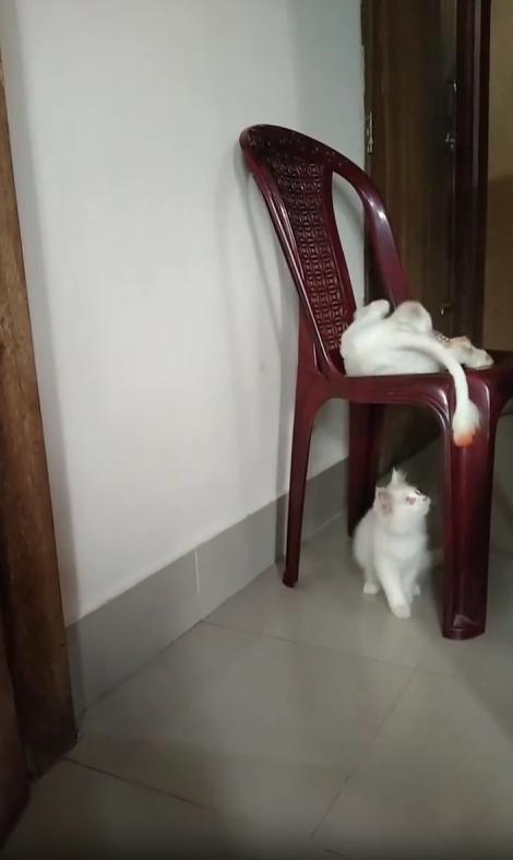 혹시 여러분도 반려동물끼리 이렇게 단순한 몸짓 하나로도 끝없는 놀이를 이어가는 모습을 본 적 있나요? 특별한 장난감이 없어도, 호기심과 장난기가 만나면 이런 소소한 놀이가 탄생합니다. 의자 위아래에서 오가는 이 장난은, 서로를 잘 아는 사이만이 만들어낼 수 있는 교감이자, 함께 사는 일상 속에서 가장 사랑스러운 순간 중 하나일 것입니다.