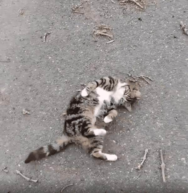 아스팔트 바닥 위, 한 마리의 고양이가 몸을 비틀어 등을 문지르기 시작했습니다. 앞발을 살짝 구부린 채 몸을 이리저리 굴리며 기분 좋은 듯한 모습이었습니다. 차가운 바닥도 전혀 개의치 않는 듯, 오롯이 이 순간을 즐기고 있었습니다.